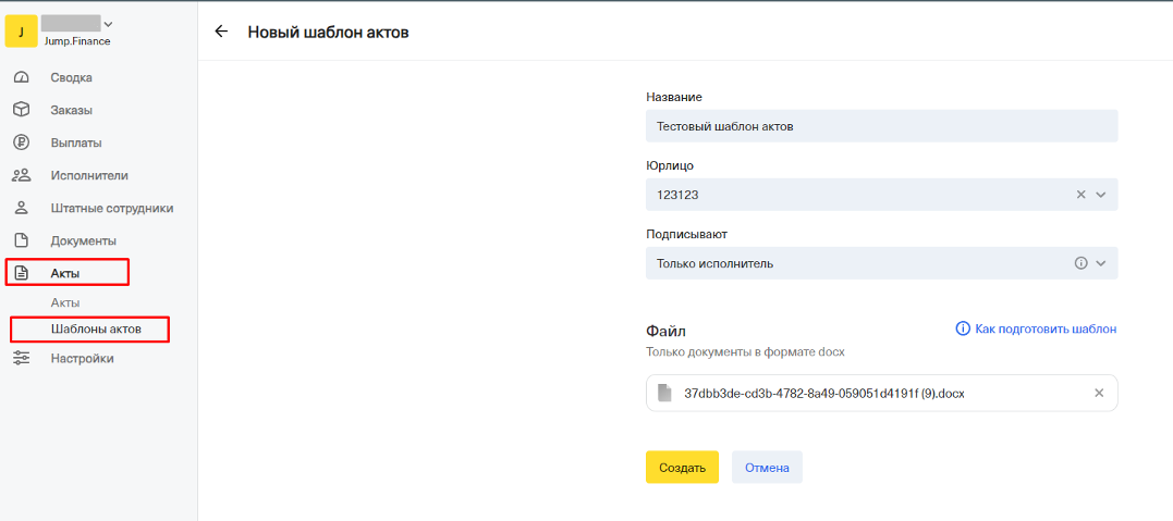 3) Выбираем созданный шаблон акта из ЛК