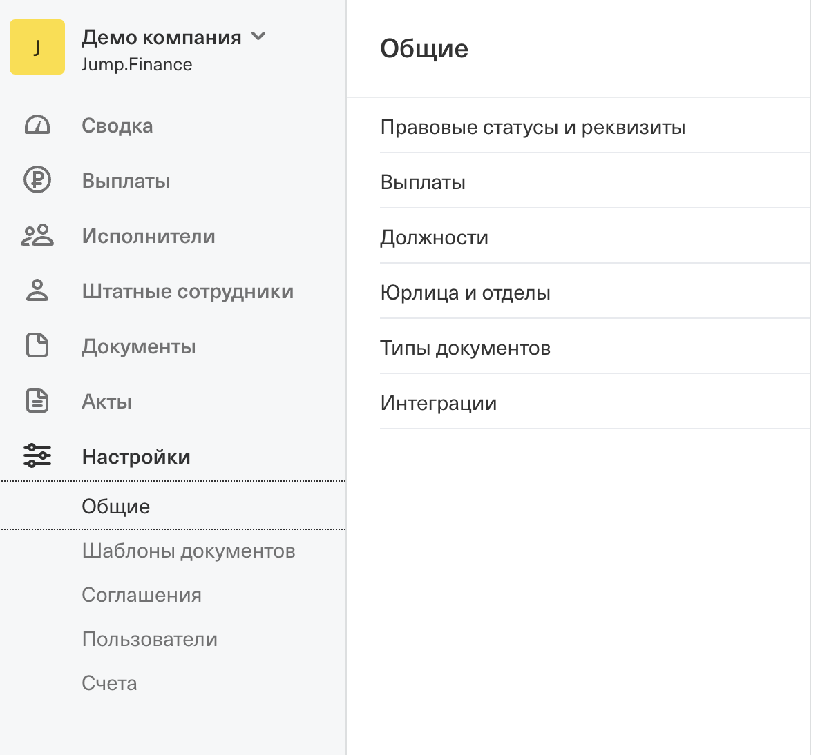 Общие — Юрлица и отделы