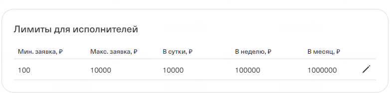 В разделе Лимиты для исполнителей вы можете установить лимиты, которые будут действовать на выплаты, созданные исполнителями через вывод с баланса из приложения Jump.Работа.