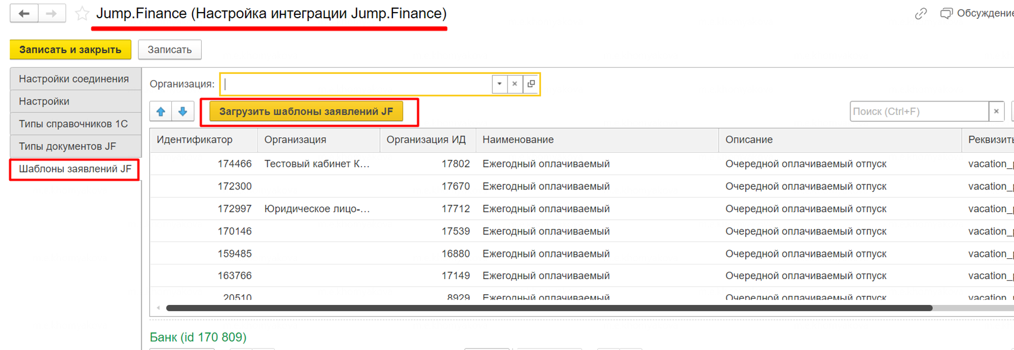 Нажимаем кнопку “Загрузить шаблоны заявлений JF”