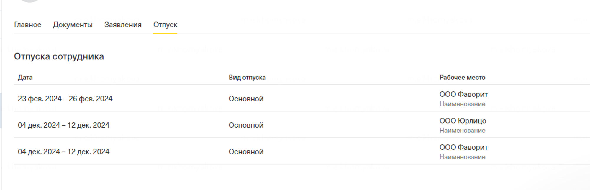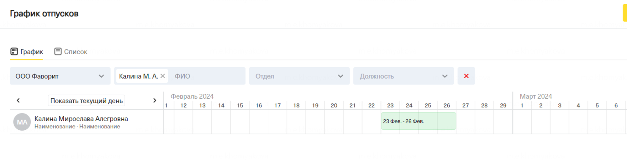 Также во вкладке “Штатные сотрудники-Отпуска” вы увидите выгруженный график.