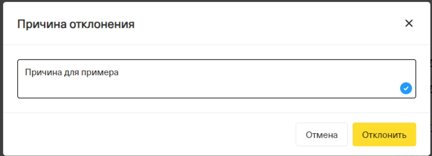 В том числе можно отказать в согласовании заявления, нажав на соответствующею кнопку “Отказать”,