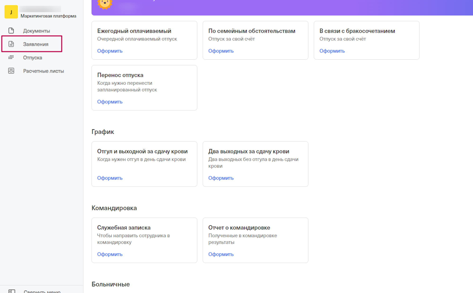 Работа с данной вкладкой обусловлена тем, что вы добавляете разделы для заявлений которые будут отражены в кабинете штатного сотрудника при подачи заявления, далее в эти разделы вы добавляете необходимые шаблоны заявлений. Они необходимы для более легкой навигации сотруднику с кабинетом.